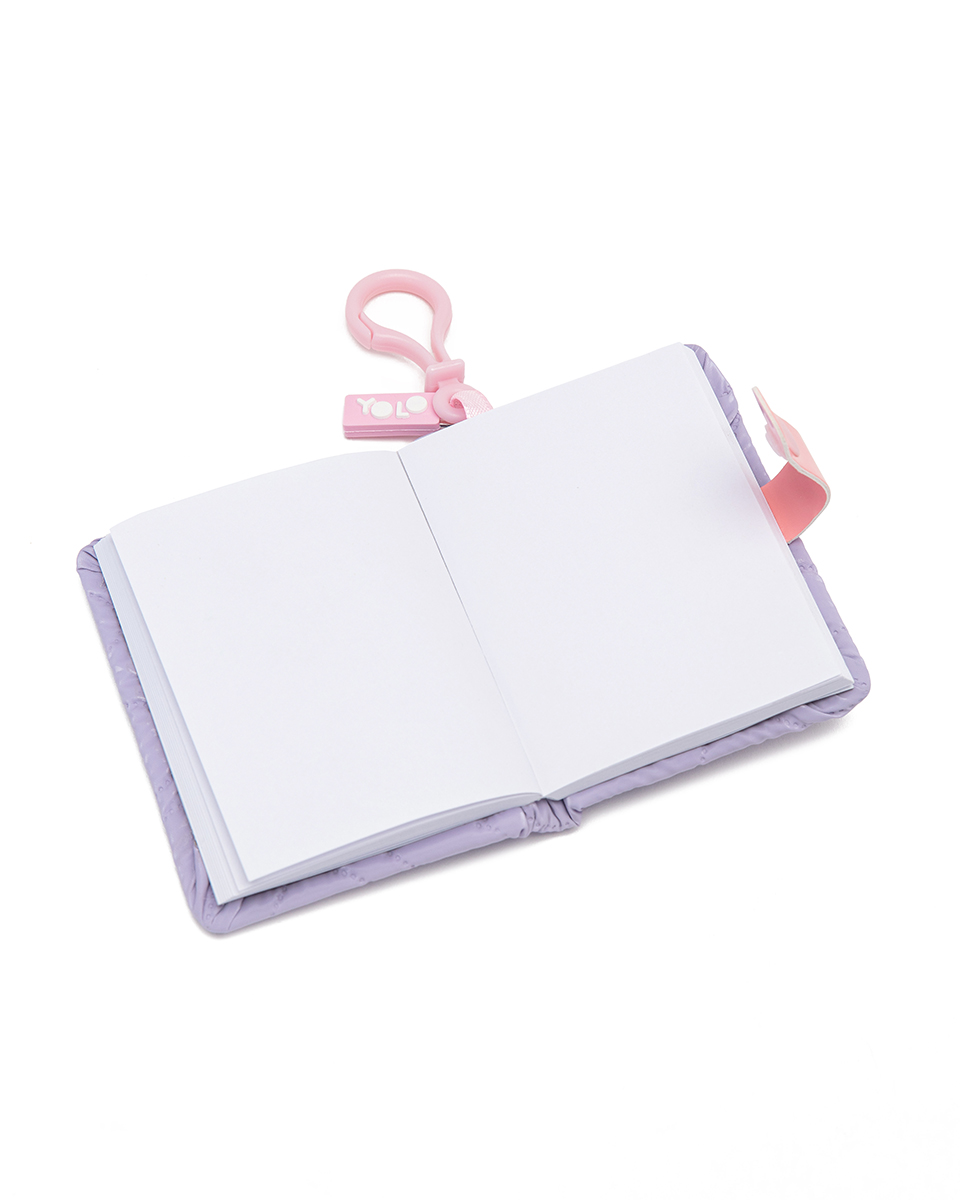 Ένα μοναδικό mini σημειωματάριο που συνδυάζει στυλ και πρακτικότητα! Το YOLO σημειωματάριο σε απαλό μωβ χρώμα με ραμμένο μοτίβο καρδιές ξεχωρίζει για τη μοντέρνα εμφάνισή του και συνοδεύεται από χαριτωμένο μπρελόκ με ροζ κλιπ, για να το κρεμάς στην τσάντα σου ή όπου σε βολεύει.