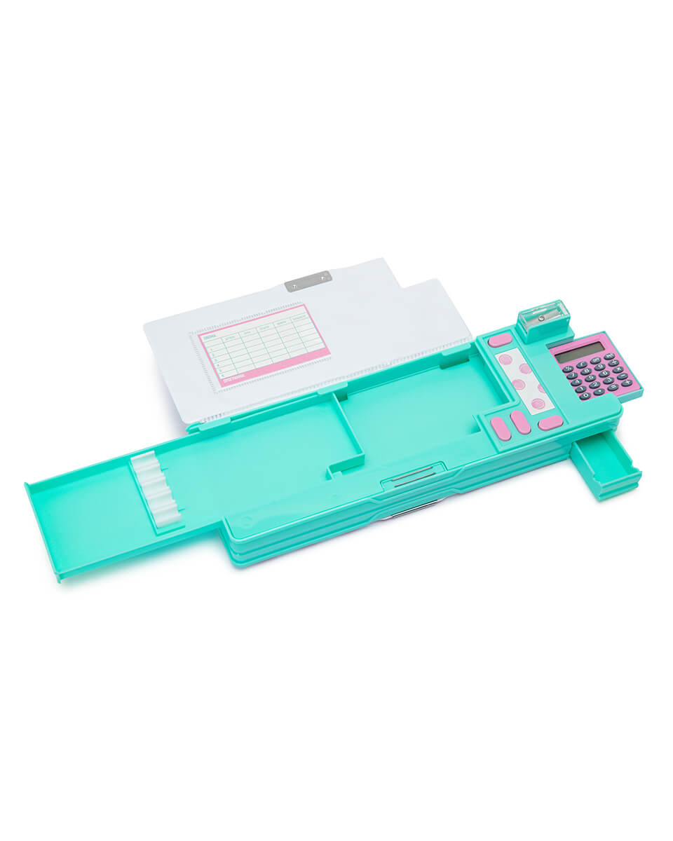 Η ρετρό κασετίνα αποτελεί ένα μυστήριο προς εξερεύνηση…  Τα παιδιά πατούν τα κουμπιά και ανακαλύπτουν το κομπιουτεράκι, μυστικές θήκες, μία ξύστρα και πολλά άλλα.
